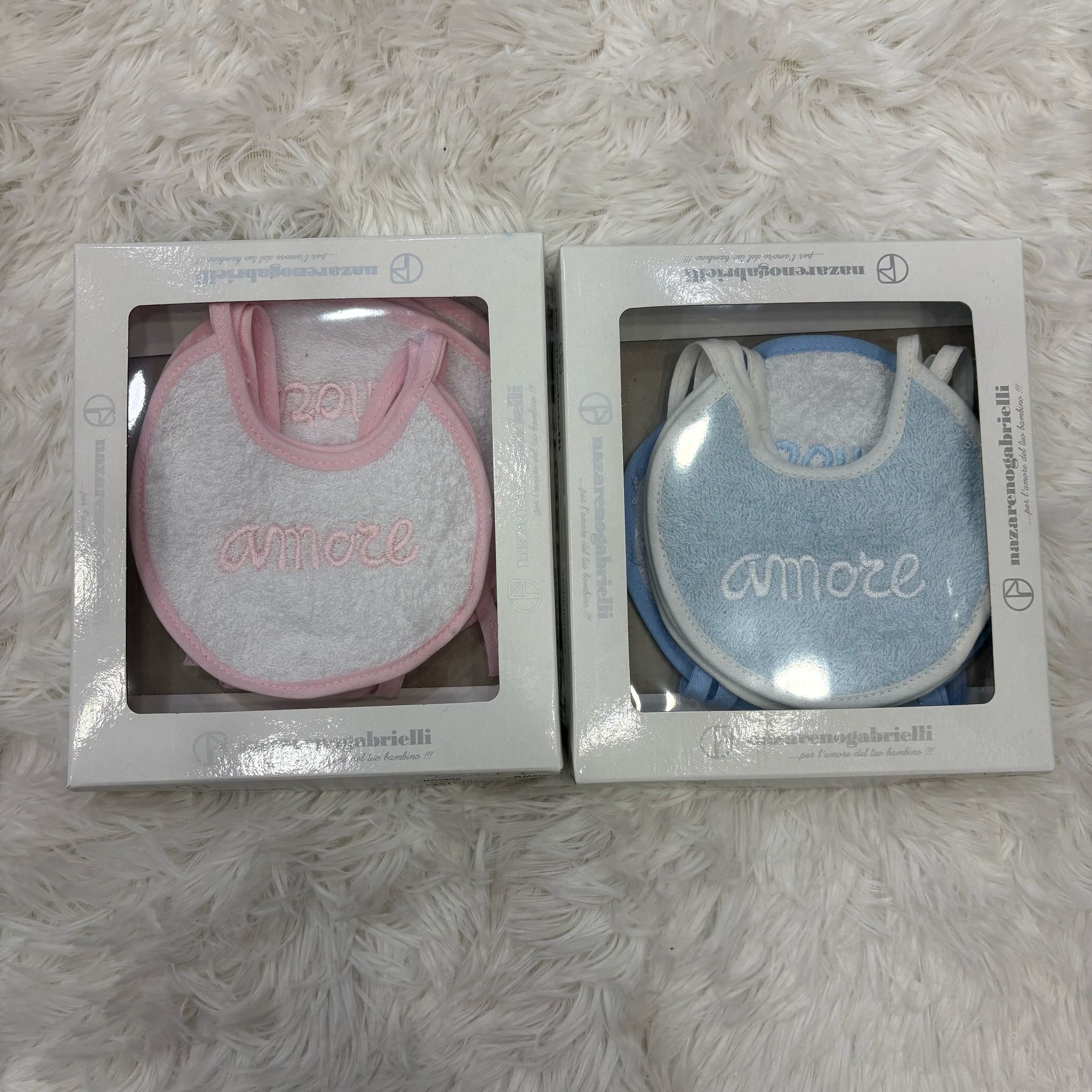 Bavetta orsetti3,00 €Questo set include 2 bavagli dello stesso di due modelli diversi, venduti insieme in coppia.