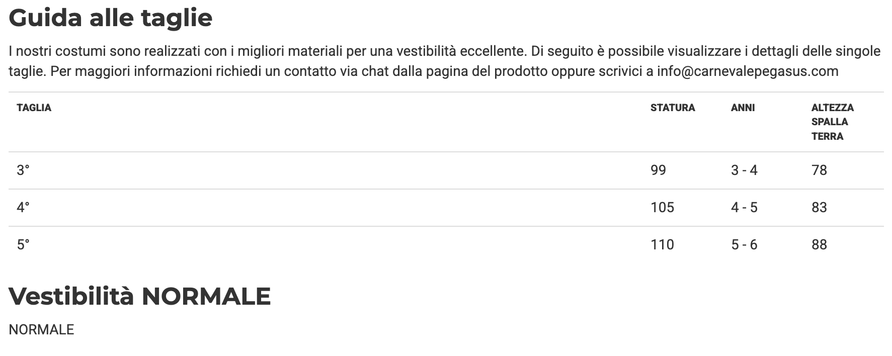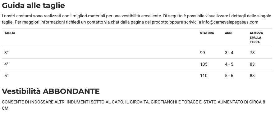 ⚠️ Attenzione: I vestiti di Carnevale non sono soggetti a cambio né reso.