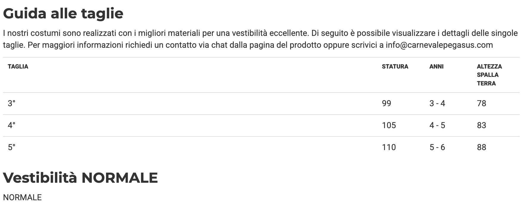 VESTIBILITA' NORMALE