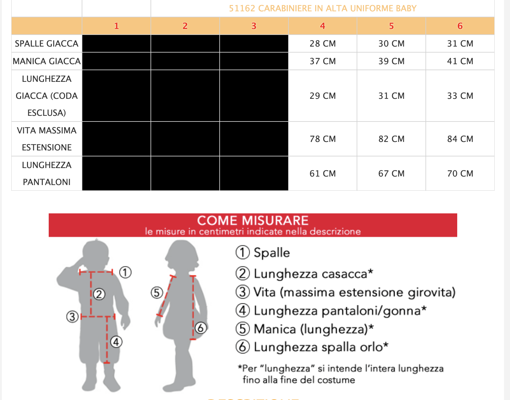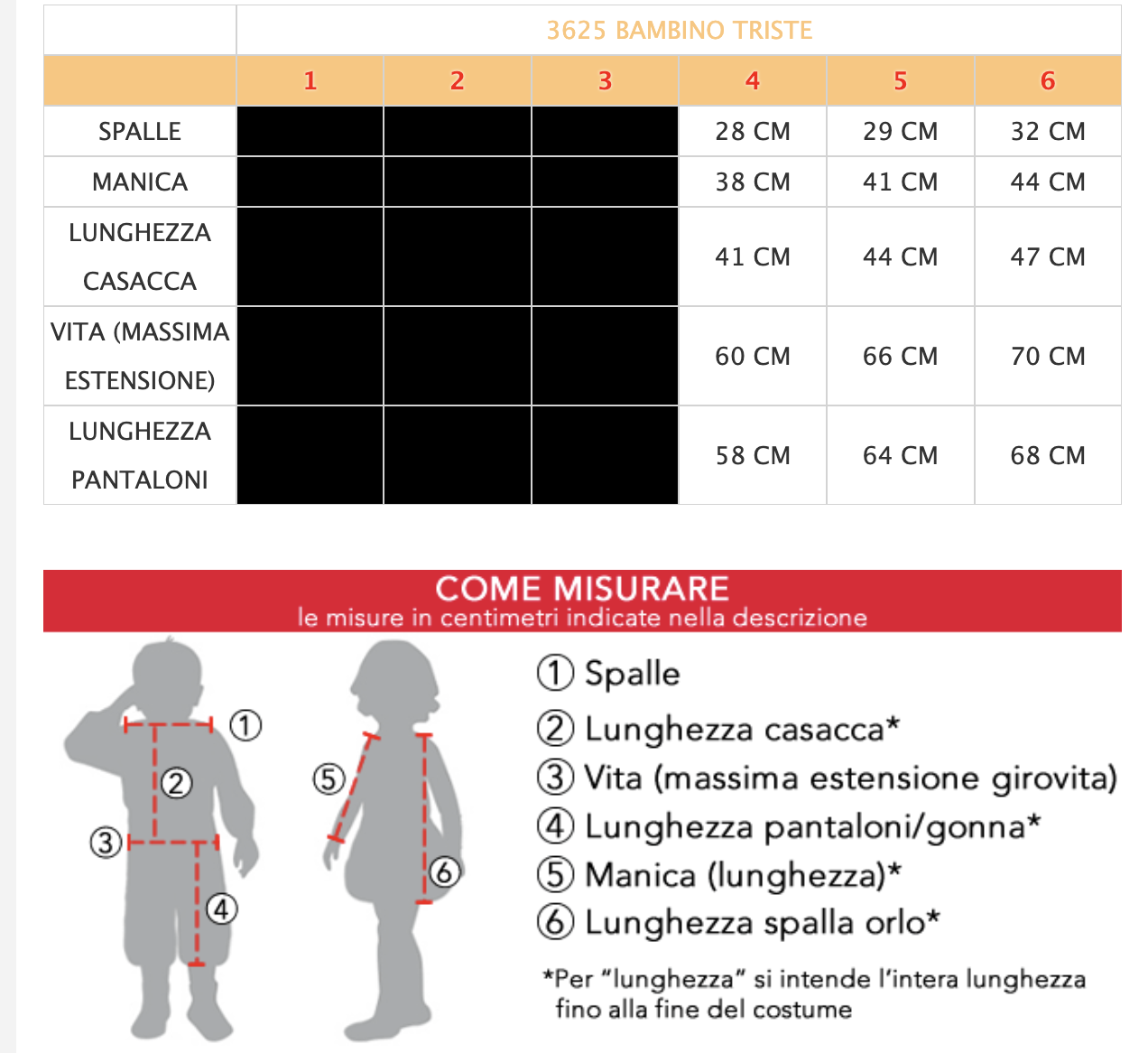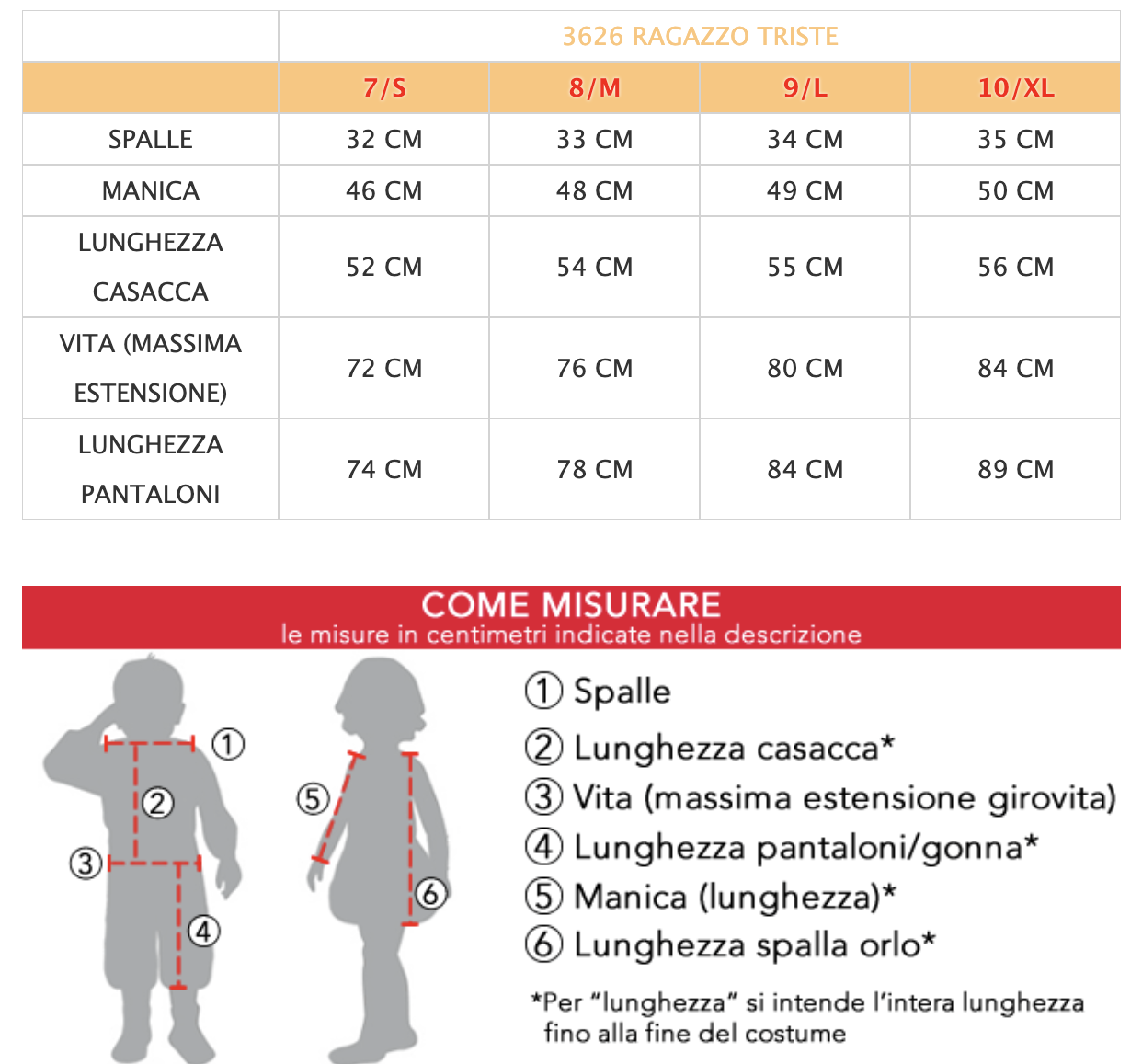 ⚠️ Attenzione: I vestiti di Carnevale non sono soggetti a cambio né reso.