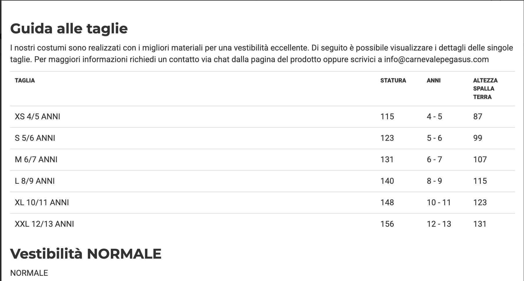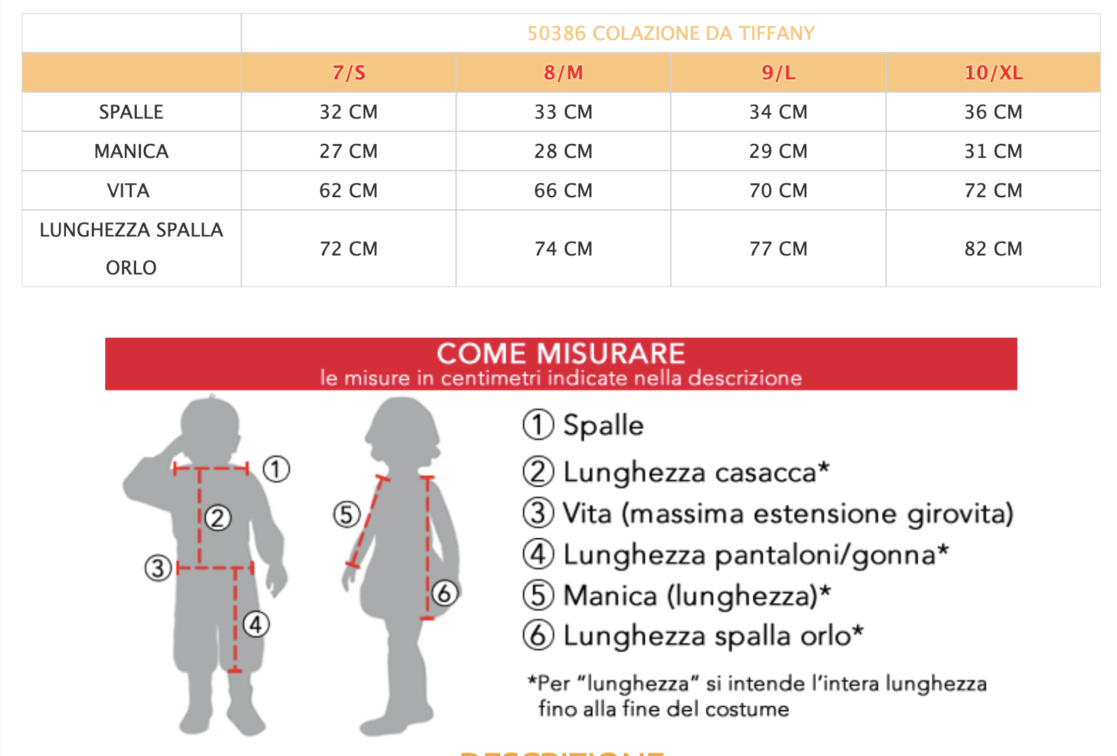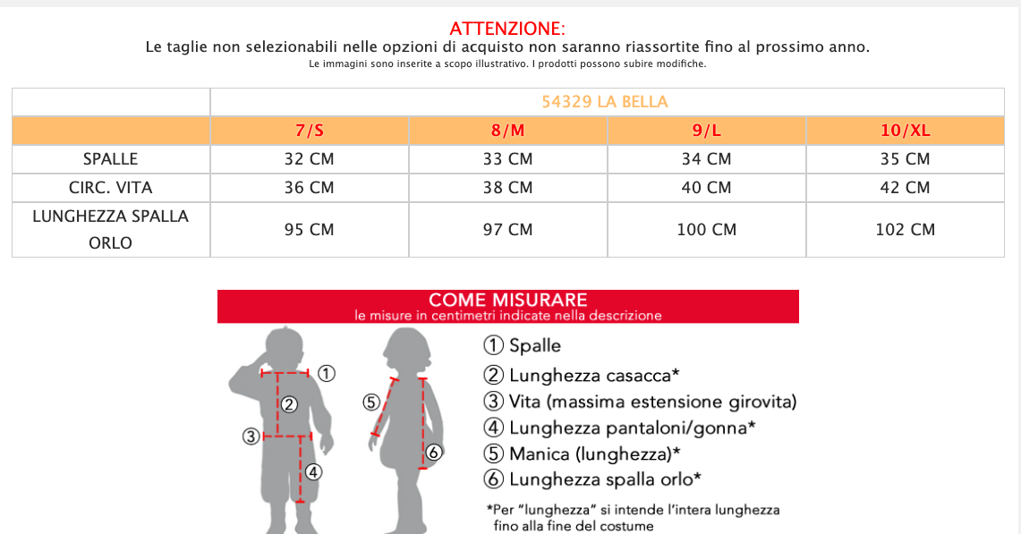 ⚠️ Attenzione: I vestiti di Carnevale non sono soggetti a cambio né reso.