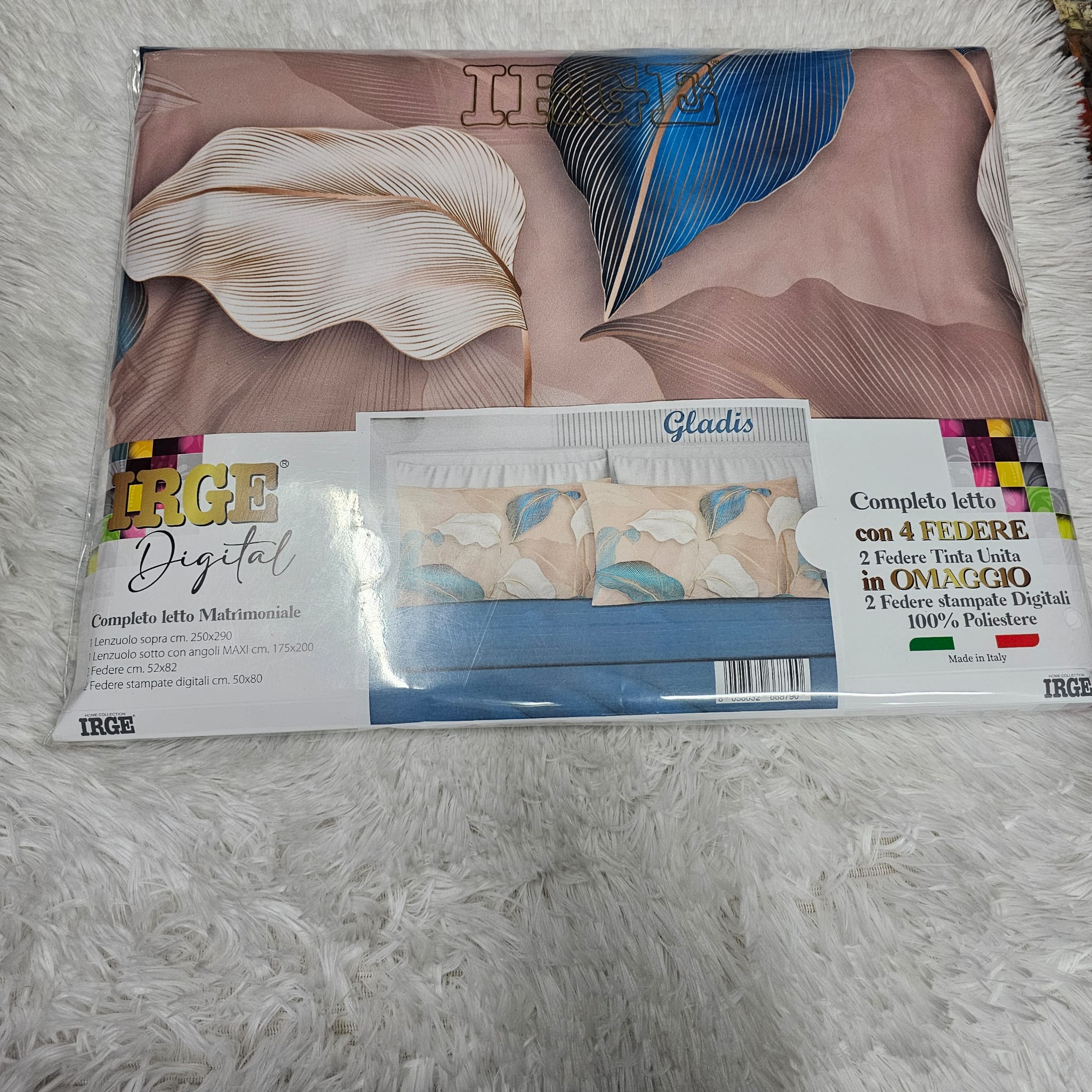Lenzuola irge sotto sopra con 4 federe puro cotone l