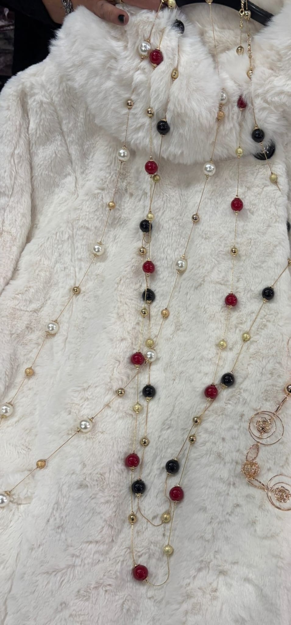 Borsa in eco pelliccia manico perle