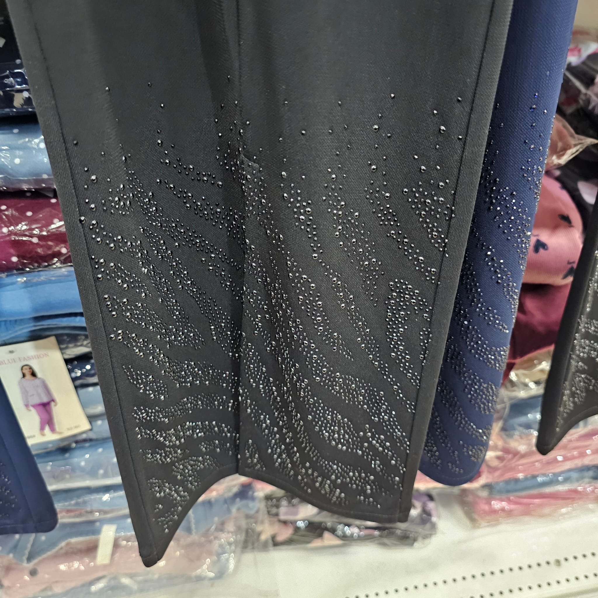 Novità pantalone in viscosa moda rossella con strass a zampa con spacco davanti